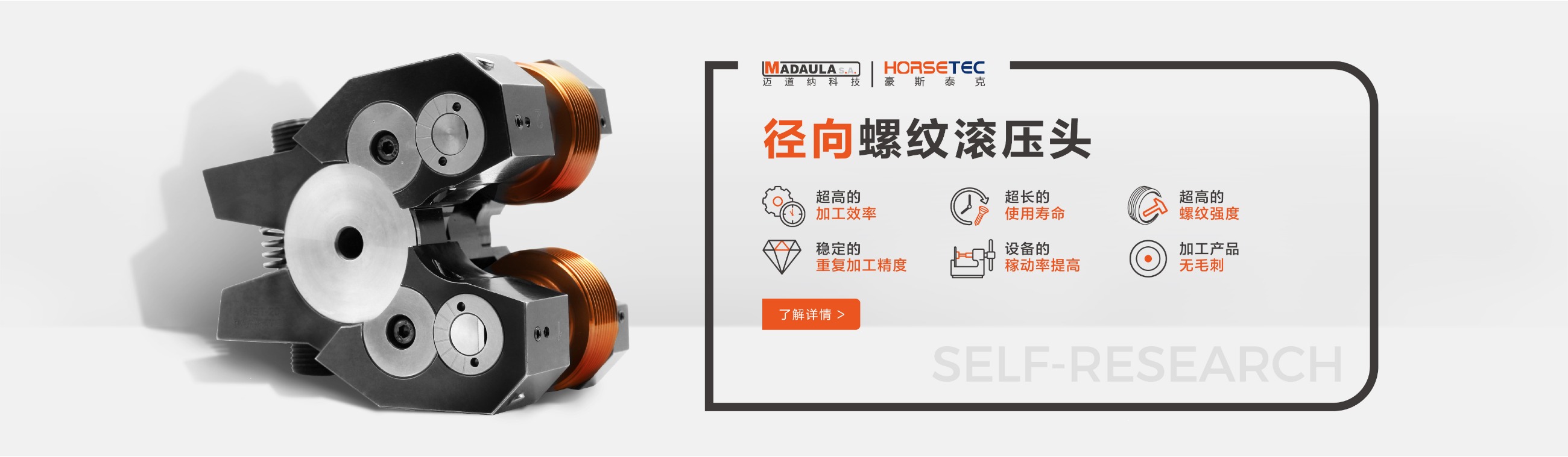很多做機械的對螺紋滾壓頭都不陌生,它的功能和優(yōu)勢也是有口皆碑的,所以現在有越來越多的人愿意選擇HORSETEC螺紋滾壓工具來滾壓螺紋,而我們常見到的螺紋滾壓工具是采用鋼材料制作而成的一種滾螺紋加工工具,成功沿襲傳統(tǒng)的螺紋滾壓頭的所有優(yōu)勢,比如高效率、高精度、高強度,除此之外,螺紋滾壓頭可以定制您的專屬logo,不僅有效提升了產品的檔次,給使用者帶來不錯利益。今天要給大家說一說高質量的螺紋滾2022-09-13